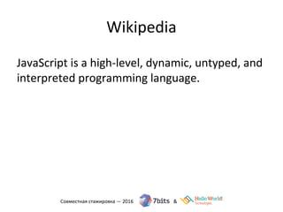 Документ представляет собой краткое руководство по языку программирования JavaScript, описывая его особенности, применение, инструменты и концепции. Он охватывает темы, такие как работа с элементами HTML, типы данных, функции, массивы, объекты и наследование, а также упоминает важные версии языка и ресурсы для обучения. Это полезный справочник как для новичков, так и для опытных программистов.