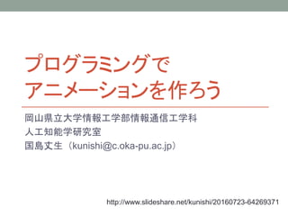 2016年7月23日開催の岡山県立大学オープンキャンパスでの体験講義「プログラミングでアニメーションを作ろう」の資料。