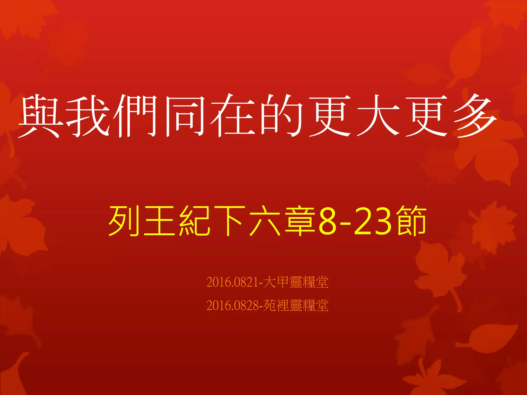 與我們同在的更大更多 列王紀下六章8-23節 2016.0821-大甲靈糧堂 2016.0828-苑裡靈糧堂