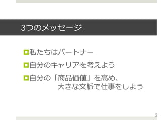 本⽇の内容 1. はじめに 2. ⾃分の商品価値を⾼めるということ 3.