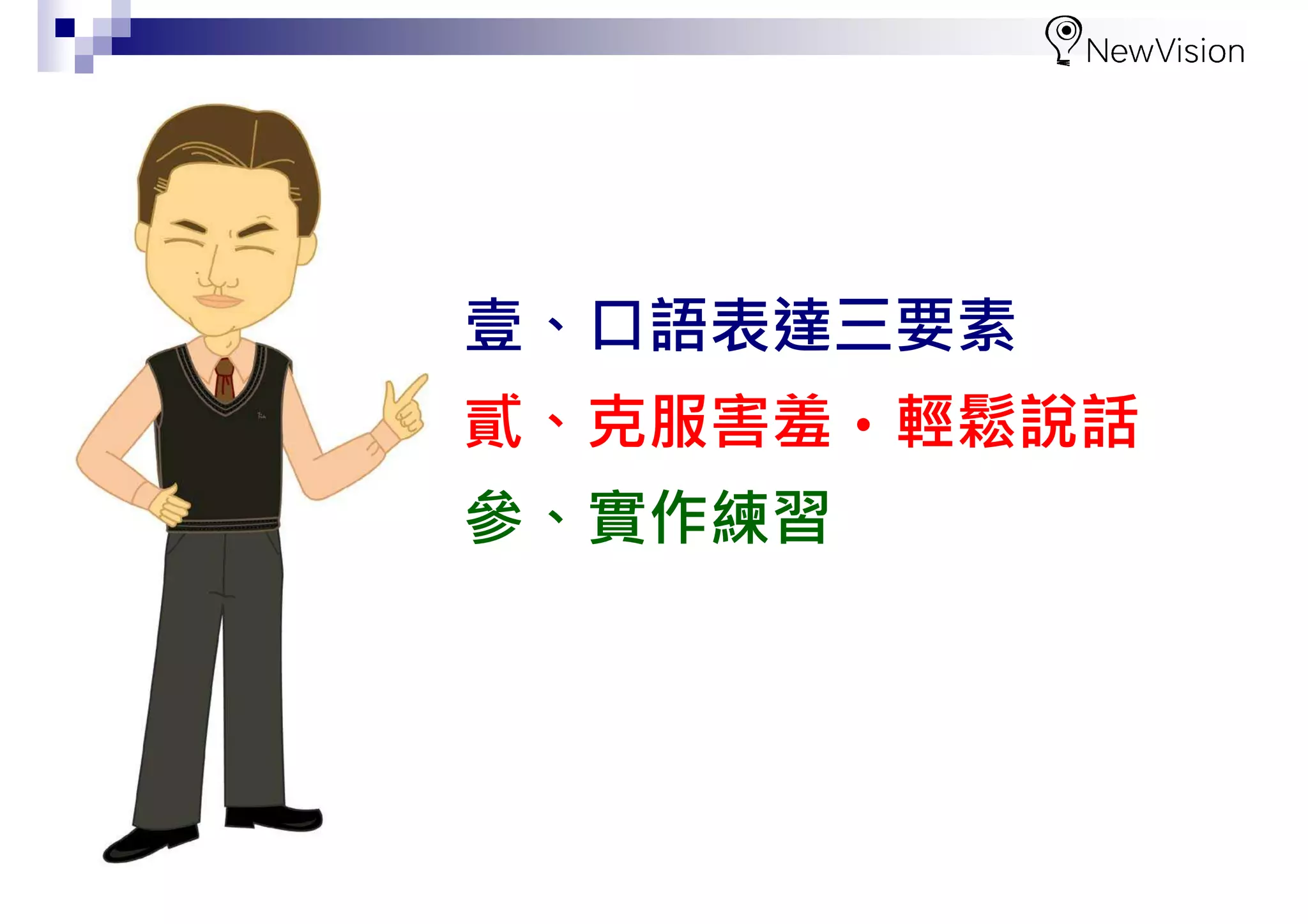壹、口語表達三要素 貳、克服害羞‧輕鬆說話 參、實作練習
