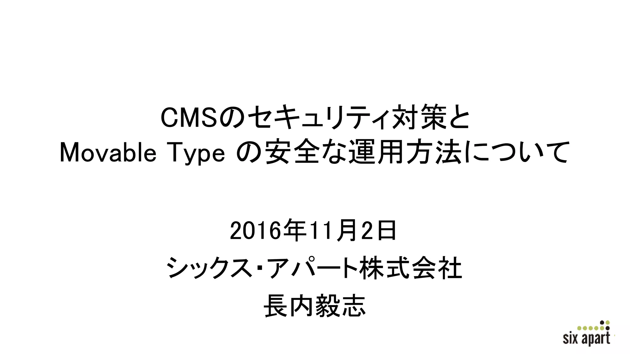 安全なサイト運用に欠かせないCMSのセキュリティ対策について PDF