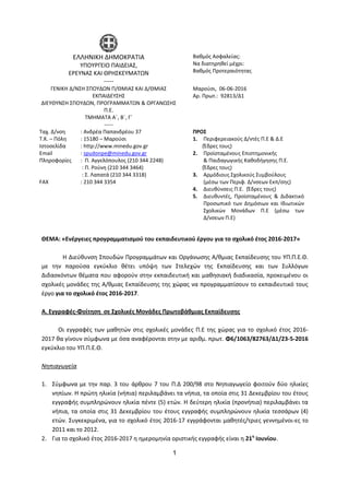 Δημοτικό Σχολείο περιλαμβάνονται στην με αριθμ. πρωτ. 87888/Δ1/30-5-2016 εγκύκλιο του