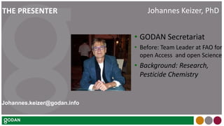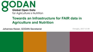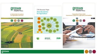 The document discusses the opportunities for open data in agriculture and nutrition from increased data availability due to advances in life sciences, information technologies, and data analytics. It outlines the need for an infrastructure to support FAIR (findable, accessible, interoperable, reusable) data principles and addresses issues like data rights, infrastructure, interoperability, and gaps. Examples are given of commercial field data and projects in Europe that integrate data from various sources using shared semantics, standards, and services. The presentation encourages partnerships to advance open data goals through working groups addressing specific challenges.
