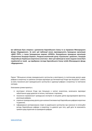 за мету посилення ролі громадянського суспільства в адвокації реформ в енергетиці та пов’язаних