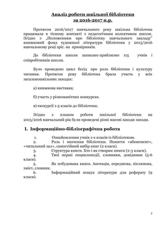 Протягом 2016/2017 навчального року шкільна бібліотека