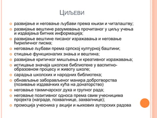 развијање инеговање љубави према књизи и читалаштву;