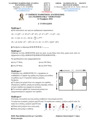 Κάθε θέμα βαθμολογείται με 5 μονάδες Διάρκεια διαγωνισμού: 3 ώρες