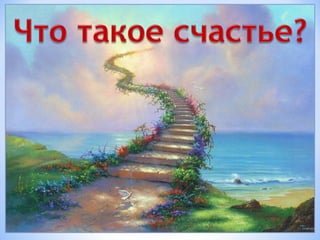 Документ описывает урок литературного краеведения, проводимый учителем русского языка Александром Данюком для 5 класса, с акцентом на сказки о счастье. В нем рассматриваются различные литературные произведения и правиlа работы в группе. Основные темы включают любовь, дружбу, семью, богатство и радость, иллюстрируемые через известные сказки.