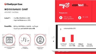 Документ обсуждает таргетированную рекламу как инструмент решения бизнес-задач, уделяя внимание идеальным настройкам для различных групп интересов и демографических данных. Приведен пример успешного кейса с фитнес-клубом, показывающий эффективность рекламы и уровень конверсии. Также рассматриваются новые метрики для оценки эффективности рекламных кампаний и синергия онлайн и оффлайн данных для лучшего понимания потребителей.