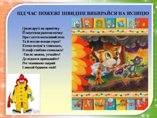 пожежогасіння, навчати дітей обережному поводженню з вогнем.
