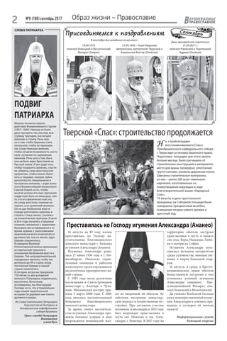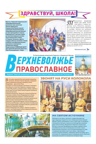 В сентябре 2017 года тверская митрополия отмечает начало учебного года в образовательных церковных учреждениях, а также церковные события, такие как служба в честь равноапостольного князя Владимира и празднование памяти игумении Александры. В документе подчеркивается значимость воскресной школы для детей и прошлые достижения церкви в условиях гонений. Также обсуждаются паломничества, общественные мероприятия и проекты, связанные с восстановлением церковных объектов и монастырей.