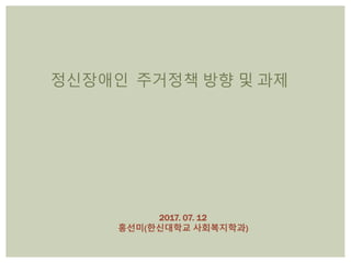 정신장애인 주거지원을 위한 관계 법령 및 제도 개선방안
