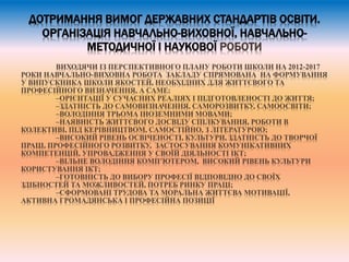 ВИХОДЯЧИ ІЗ ПЕРСПЕКТИВНОГО ПЛАНУ РОБОТИ ШКОЛИ НА 2012-2017
