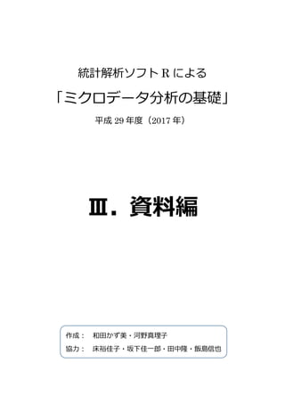 統計解析ソフト R による 「ミクロデータ分析の基礎」 平成