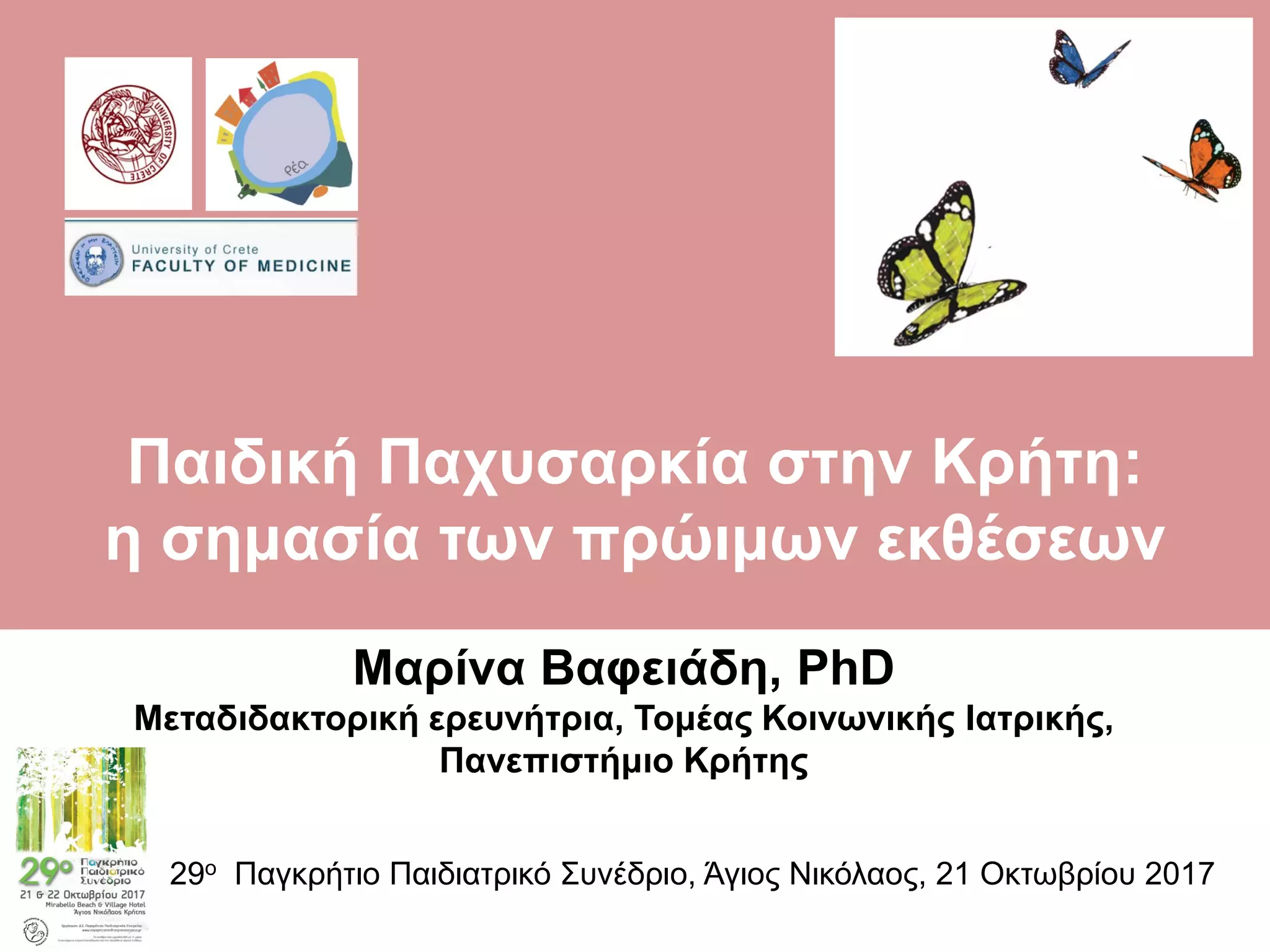 29ο Παγκρήτιο Παιδιατρικό Συνέδριο, Άγιος Νικόλαος, 21 Οκτωβρίου 2017