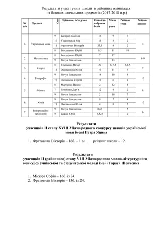 1. Фратовчан Вікторія – 16б. – 1 м. , рейтинг школи – 12.