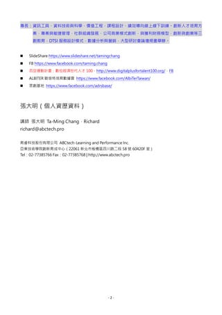 自己成為數位經濟世代的乾貨(DIGITAL+ FOR TALENT100),亞太數位聯盟-眾創基地(2017/11)