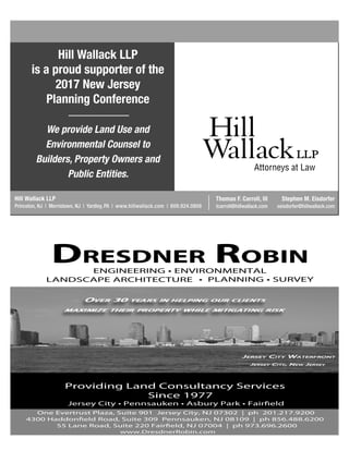 The document announces the 2017 New Jersey Planning Conference, honoring Dean James W. Hughes for his contributions to the planning community and introducing a new award in his name. It provides an outline of conference activities, including sessions with gubernatorial candidates and expert speakers on various planning topics, as well as networking opportunities for professionals. The conference aims to enhance collaboration within the planning field and foster positive change in New Jersey through discussions on current challenges and best practices.