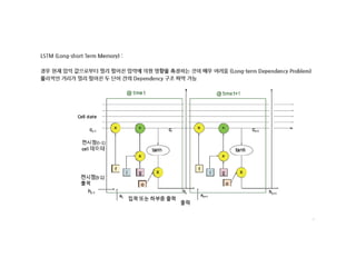 로 불립니다. 엘에스티엠은 장기 의존성(Vanishing Gradient)을 학습을 수 있는 특
