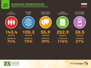 Документ содержит информацию о достижениях и положении digital-агентства WebCanape в России, включая рейтинги, количество сотрудников и клиентов. Обсуждаются актуальные тренды в разработке и продвижении сайтов, такие как мобилизация, переход на HTTPS и текстовая оптимизация. Также представлены новшества в контекстной рекламе и социальных сетях, а также рекомендации по эффективному использованию различных каналов продвижения в 2017 году.