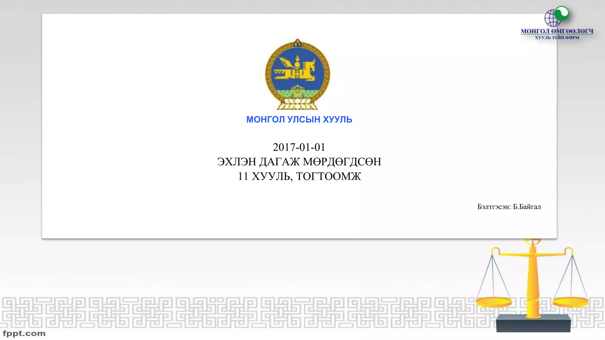 МОНГОЛ УЛСЫН ХУУЛЬ 2017-01-01 ЭХЛЭН