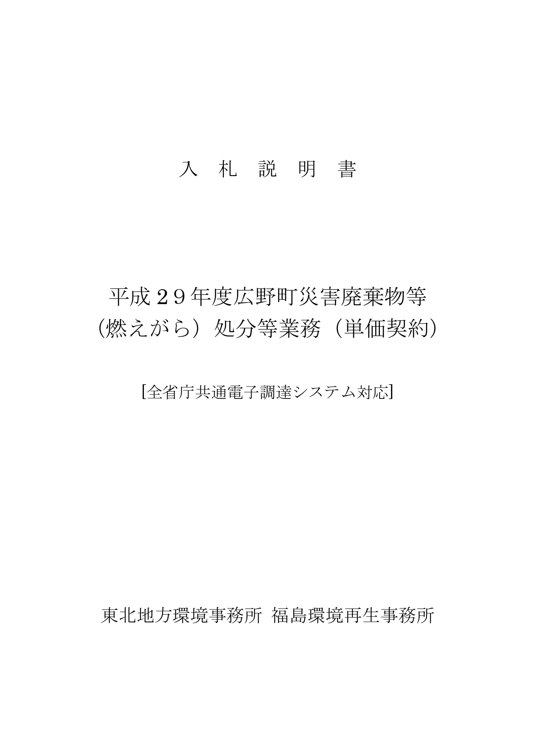 明 書 平成 29年度広野町災害廃棄物等 (燃えがら)処分等業務(単価契約) [全省庁共通電子調達システム対応] 東北地方環境事務所 福島環境再生事務所