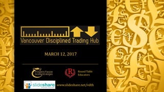 This document provides information about a group called Vancouver Disciplined Trading Hub (VDTH) that meets every Sunday to discuss trading strategies. The group is led by Karim Adatia, Maki Yanagi and other financial educators. They teach about disciplined trading, which involves predefining risk, cutting losses, and using systematic money management. Their inspiration comes from traders like Mark Douglas and Norman Hallet. The group offers content and programs on non-directional and directional trades that utilize options strategies. Non-directional trades focus on range-bound markets using techniques like iron condors that benefit from time decay. The document provides disclaimers about the educational nature of the content and that they are not providing individual recommendations