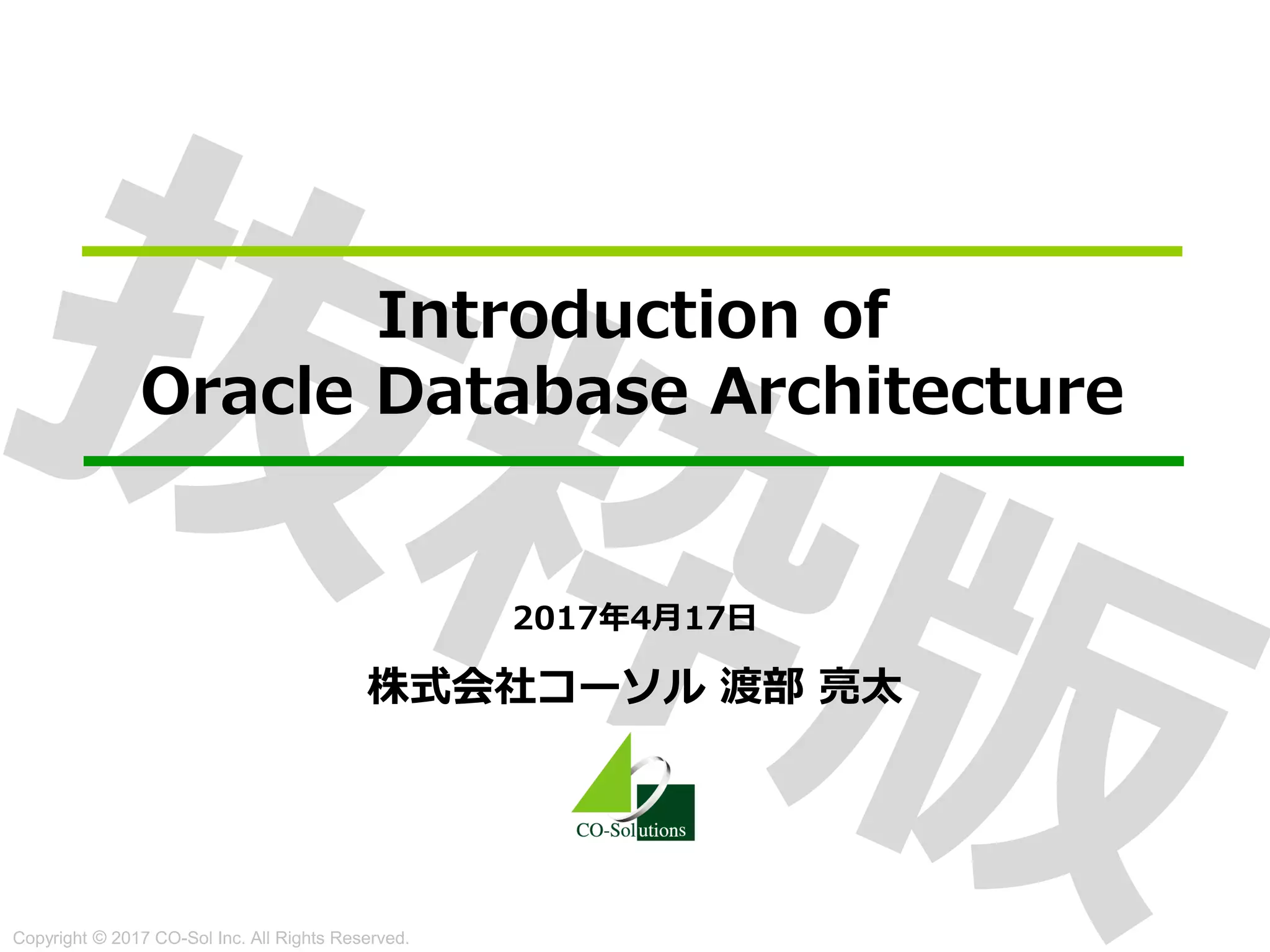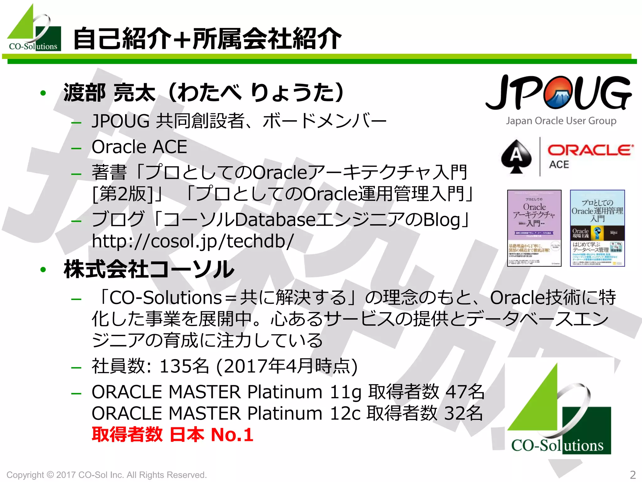 Japan Oracle User Group (JPOUG) Oracle Database入学式 2017 – 保護者の方はご遠慮ください http://www.jpoug.org/?p=1979 で使用した資料の抜粋です。