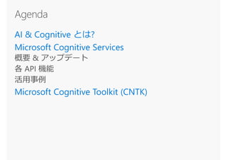 MicrosoftのAIテクノロジーを活用しよう ~インテリジェントAPIからディープ ラーニング フレームワークまで~