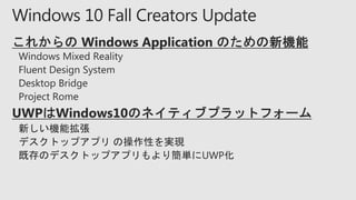 20171108 Tech Summit 2017 最新! Windows 10 Fall Creators Update新機能とアプリケーション開発