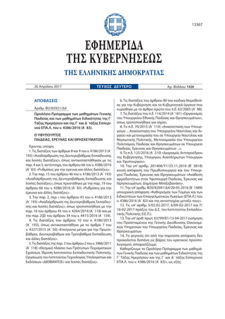 Στο ΦΕΚ 1426/τ.Β/26-4-17 δημοσιεύθηκε η υπ΄ αριθμ. Φ2/65921/Δ4 υπουργική απόφαση με θέμα «Ωρολόγιο Πρόγραμμα των μαθημάτων Γενικής Παιδείας και των μαθημάτων Ειδικότητας της Γ΄ Τάξης Ημερήσιου και της Γ΄ και Δ΄ τάξης Εσπερινού ΕΠΑ.Λ. του ν. 4386/2016 (Α’ 83)»