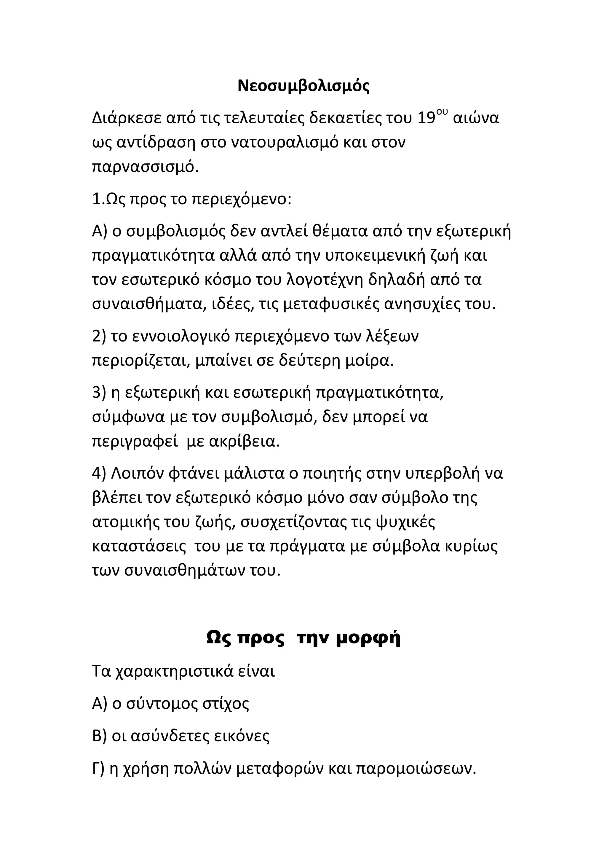 Α) ο συμβολισμός δεν αντλεί θέματα από την εξωτερική