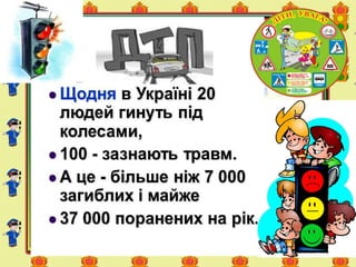 • Щороку в світі від дорожньо-транспортних при-год гине понад 250 тисяч людей. За рік в Україні загинуло