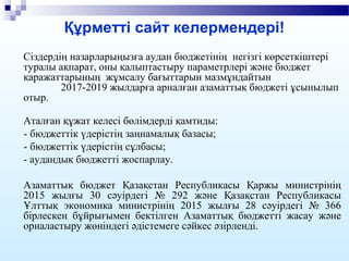 2017-2019 жылдарға арналған азаматтық бюджеті ұсынылып