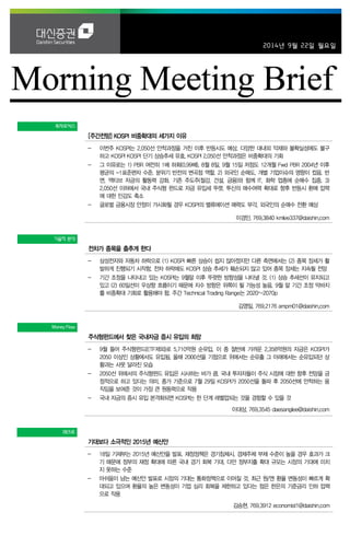 [주간전망]KOSPI 비중확대의 세가지 이유