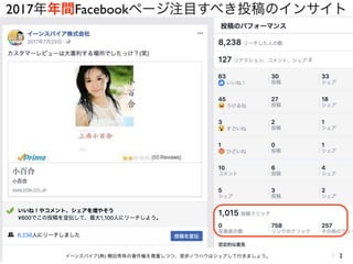 2イーンスパイア(株) 横田秀珠の著作権を尊重しつつ、是非ノウハウはシェアして行きましょう。 2017年年間Facebookページ注目すべき投稿のインサイト
