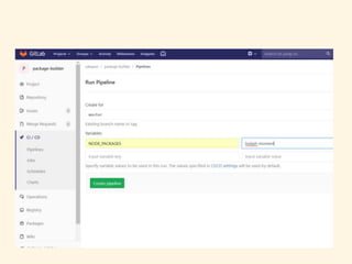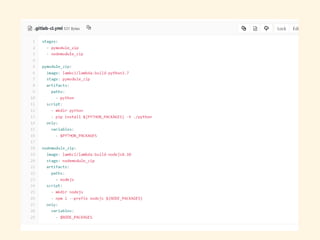 欲しいパッケージだけ集める便利なの作った • GitlabのCIを使う • 環境変数に欲しいモジュール名を書いてCIを回 す •