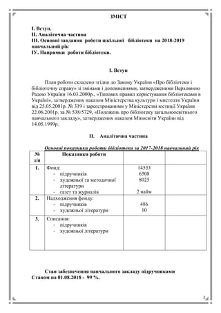 План роботи бібілотеки на 2018- 2019 навчальний рік