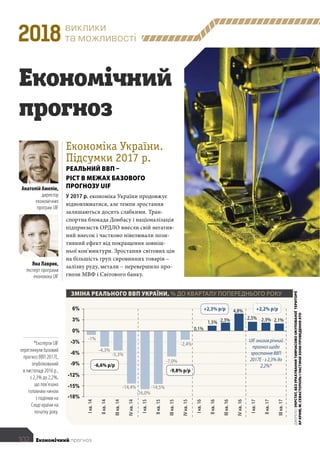 У 2017 р. економіка України продовжує відновлюватися, але темпи зростання залишаються досить слабкими. Транспортна блокада Донбасу і націоналізація підприємств ОРДЛО внесли свій негативний внесок і частково нівелювали позитивний ефект від покращення зовнішньої кон'юнктури. Зростання світових цін на більшість груп сировинних товарів – залізну руду, метали – перевершило прогнози МВФ і Світового банку.
