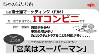 新世代エイジョカレッジ(http://eijyo.com/)の2018年度サミットにて、営業や業界の当たり前の破壊と、新たな創造にチャレンジした24実証実験の中から、ファイナリストに残った株式会社富士通マーケティング「FJM WAY」のプレゼンテーションスライドです。
