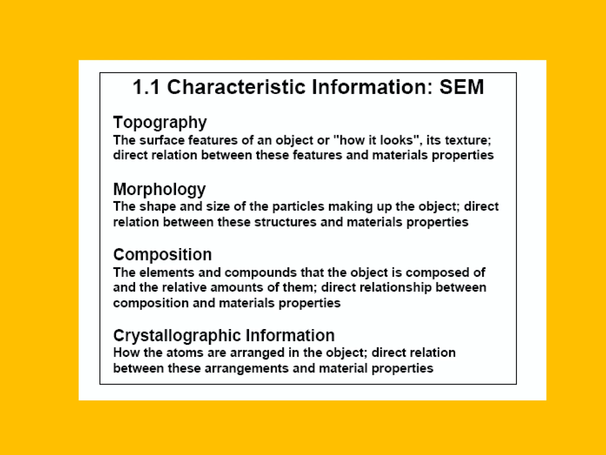 The document provides an overview of Scanning Electron Microscopy (SEM), focusing on its principles, instrumentation, and applications. SEM produces high-resolution, three-dimensional images of sample surfaces using a high-energy electron beam, and it is particularly valuable in semiconductor research and defect analysis. The document also details the electron-specimen interactions and the advantages of SEM over optical microscopy, including greater magnification and depth of field.
