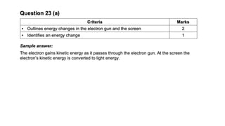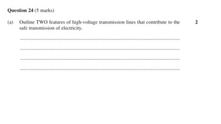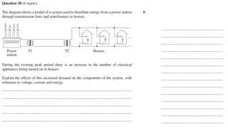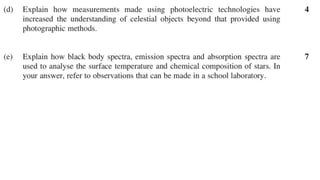 The document discusses the impact of increased energy demand on voltages, current, and energy losses in power systems. It explains how higher current increases heat losses in transmission lines and transformers, resulting in slight voltage drops. Additionally, it covers the characteristics of black body radiation, spectral lines in stars, and methods for identifying chemical compositions using unique spectra from gas discharge tubes.