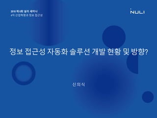 이렇게 자동화를 통해 진단하는 것을 보시면, Error 와 Warning으로 나오시는 걸 보실 수 있습니다. 확실하다 생각되는 규칙은 Error로 애매한 이슈는 Warning으로 구분되어 집니다. 예를 들어 <img> 태그에 alt이 없으면 확실한 오류 입니다. <img> 태그에 alt 값이 빈 값으로 되어 있으면, 애매합니다. 정보성 이미지가 아니거나, 이미지를 설명하는 별도의 텍스트를 제공하고 있는 경우 alt 속성을 빈 값으로 제공해도 되기 때문입니다. 이런 경우는 warning으로 제공해서 확인을 부탁하는 의미로 접근합니다. 화면의 깜박임도 자동으로 진단하기는 어렵습니다.