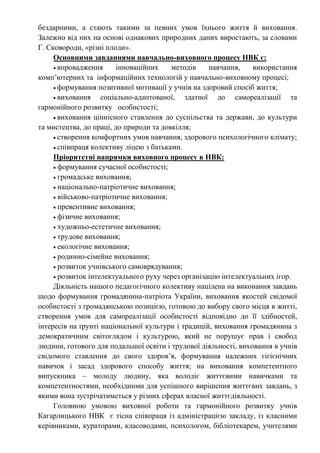 людини, готового для подальшої освіти і трудової діяльності, виховання в учнів