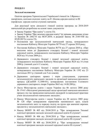 Освітняпрограма Тернопільської Української гімназії ім. І.Франка є