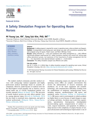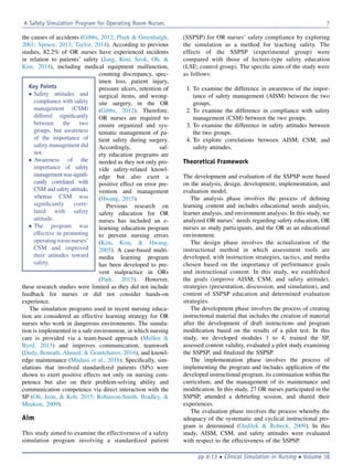 The study evaluated the effectiveness of a safety simulation program involving a standardized patient for operating room nurses compared to a control group that received a lecture on safety. The simulation program was found to significantly improve nurses' safety attitudes and compliance with safety management procedures, though it did not affect their awareness of the importance of safety management. Correlations were observed between variables such as awareness, compliance, and safety attitudes.