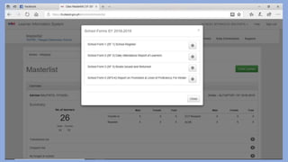 The document provides an overview and instructions for completing several school forms used by the Pulilan Central School. It begins with an agenda for an orientation on school forms, then provides details on DepEd orders that adopted modified and new school forms. The presentation provides an overview of School Forms 1, 3, and 8 which cover the school register, books issued and returned, and learner's basic health and nutrition report. It demonstrates how to generate the forms from the Learner Information System and includes guidelines and reminders for accurately completing each form.