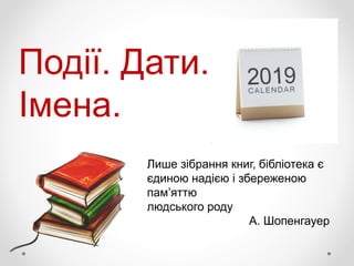 • 110 років з часу заснування першої бібліотеки для дітей