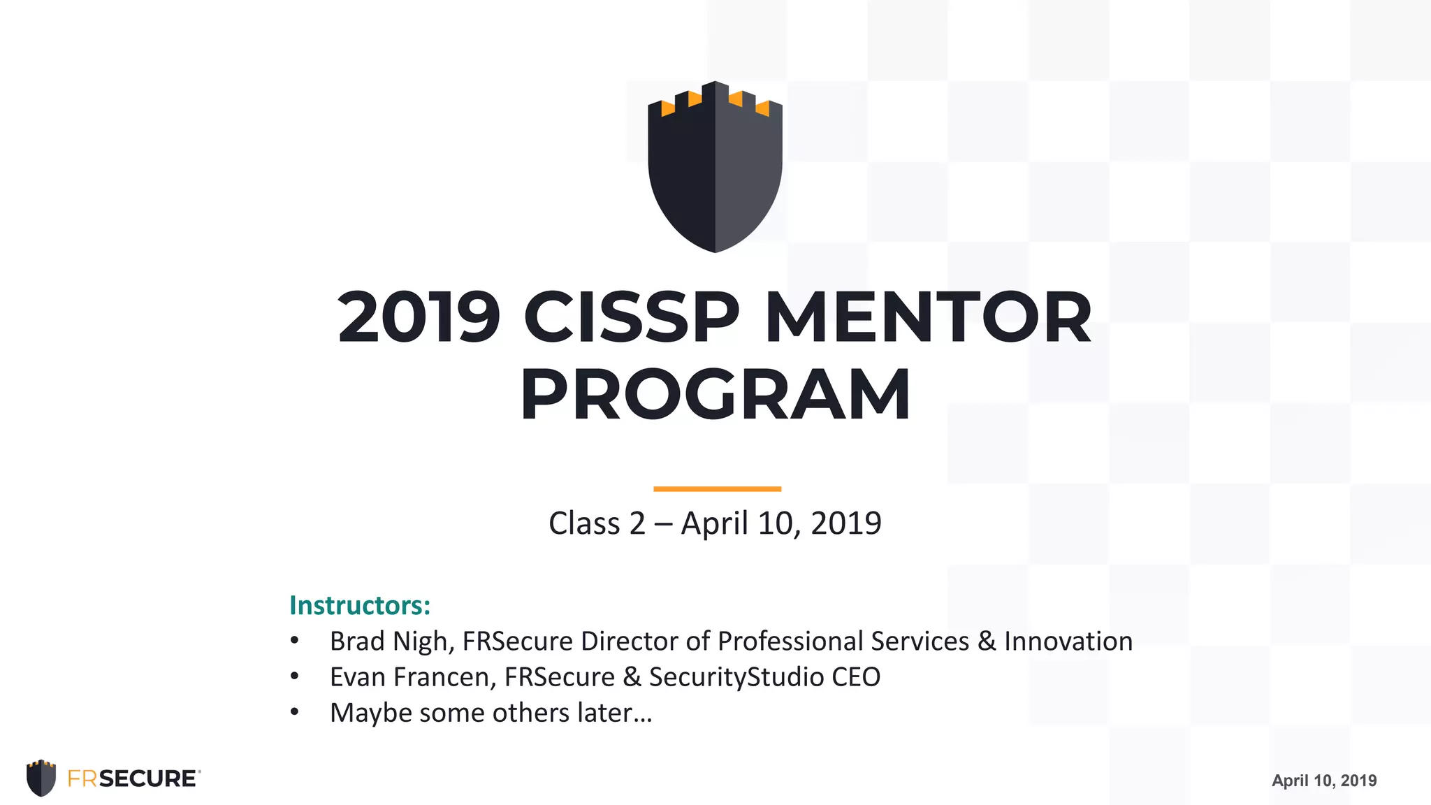 This document summarizes the second session of a CISSP mentor program held on April 10, 2019. The session covered several topics related to CISSP Domain 1 including security concepts like confidentiality, integrity, and availability. It defined key terms like risk, annualized loss expectancy, and return on investment. It also discussed identity and access management concepts such as identity, authentication, authorization, and accountability. The session aimed to help students understand and memorize these foundational information security principles.